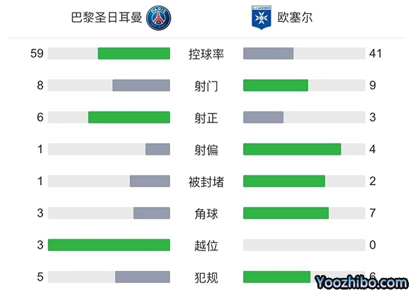 全场比赛结束,巴黎5-0欧塞尔。