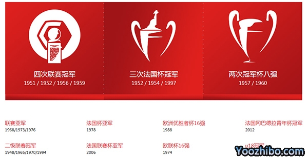 法甲 | 冠军 | 1950/51,1951/52,1955/56,1958/59 |