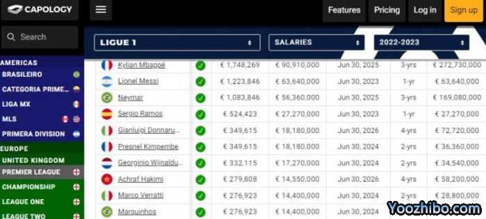 JRS直播网07月18日讯 消息,国际足球财务与薪资数据库capology公布了法甲联赛球员薪水排行,刚刚续约的姆巴佩年薪9091万欧元位居第一。