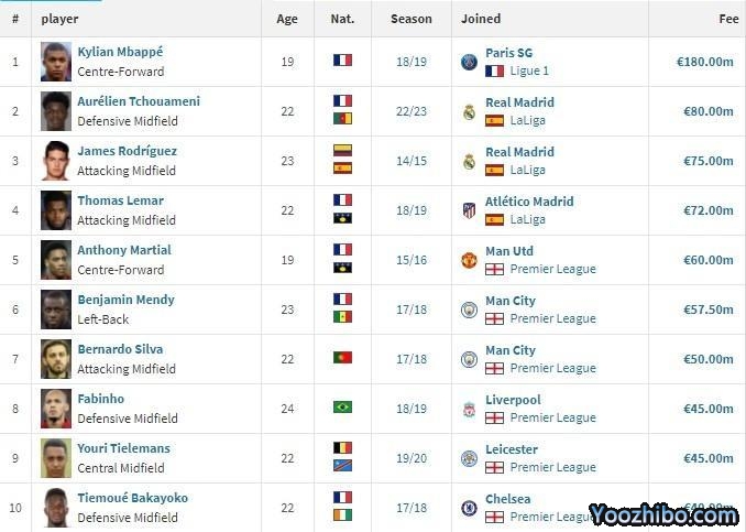 4、勒马尔:18/19赛季→马竞(7200万欧)