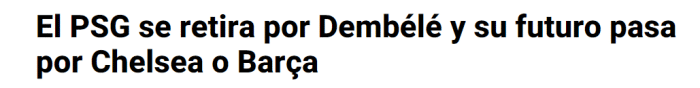 JRS直播网06月06日讯 据《每日体育报》报道,巴黎圣日耳曼已经不再追求登贝莱,现在这名球员的未来只剩下加盟切尔西或续约留在巴萨的可能。