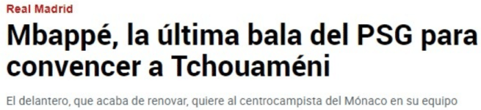 皇马在无缘引进姆巴佩后全力追求琼阿梅尼,但姆巴佩在续约并获得极大权力后,他也要求巴黎签下这名法国中场。现在,他已批准球队引进这名摩纳哥新星,姆巴佩和本泽马正在分别为巴黎和皇马说服琼阿梅尼加盟。