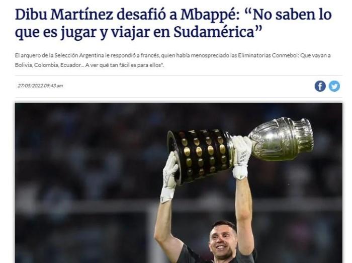 阿根廷门将马丁内斯和劳塔罗对于这个言论进行了回击。