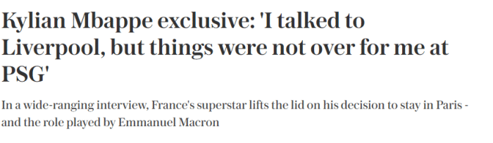 JRS直播网05月24日讯 姆巴佩日前接受了《电讯报》专访,他谈到了自己的续约,与皇马的关系以及和其他俱乐部的传闻。