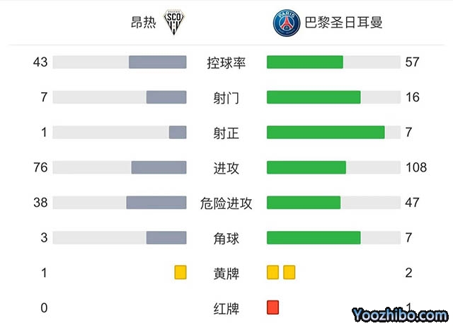 全场比赛结束,巴黎圣日耳曼3-0昂热。