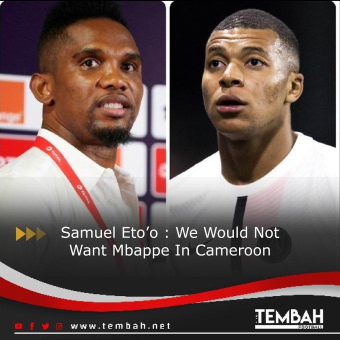 JRS直播网03月28日讯 姆巴佩的父亲来自喀麦隆,他在法国出生。埃托奥表示:“我不希望出生在波尔多的姆巴佩加入喀麦隆国家队,我希望培养一个出生在喀麦隆工人阶层的姆巴佩。因为我们拥有应该得到重视的天才球员。”