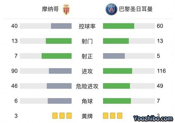 全场比赛结束,巴黎圣日耳曼客场0-3不敌摩纳哥。