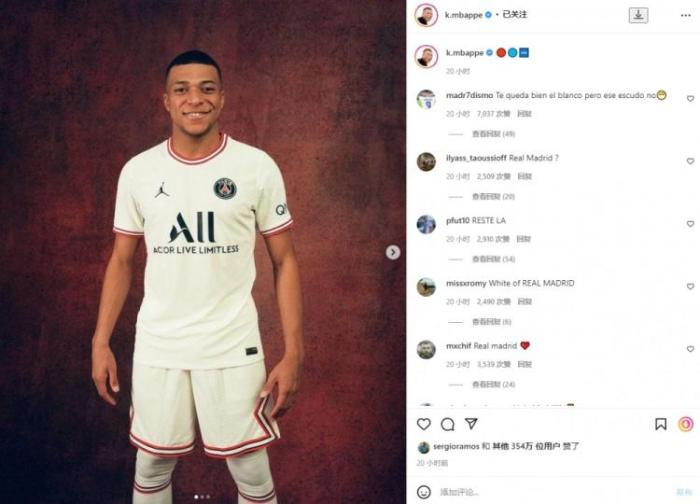 JRS直播网02月12日讯 近日,巴黎圣日耳曼官方发布了本赛季主色调为白色的第三客场球衣。姆巴佩随后穿着这件球衣在社交媒体中发布了自己的照片。