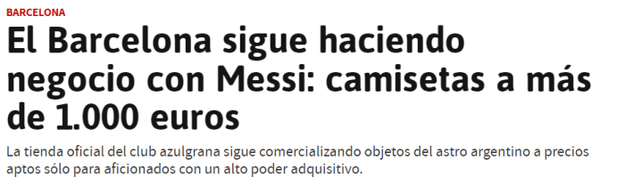 巴萨今夏因为无力续约梅西而导致球员自由转会加盟巴黎圣日耳曼,但尽管如此,巴萨的官方商店仍在高价出售这位阿根廷球员的周边产品。