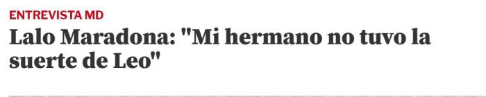JRS直播网12月17日讯 近日,马拉多纳的弟弟拉罗-马拉多纳接受西班牙媒体《世界体育报》采访时表示,迭戈和梅西都是最佳球员。