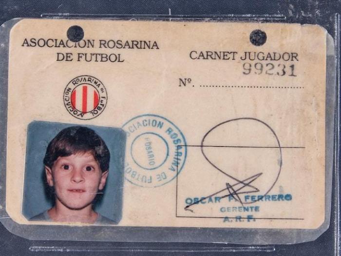 戈尔丁拍卖行拿到了一张20多年前梅西当时效力纽维尔老男孩的证件。