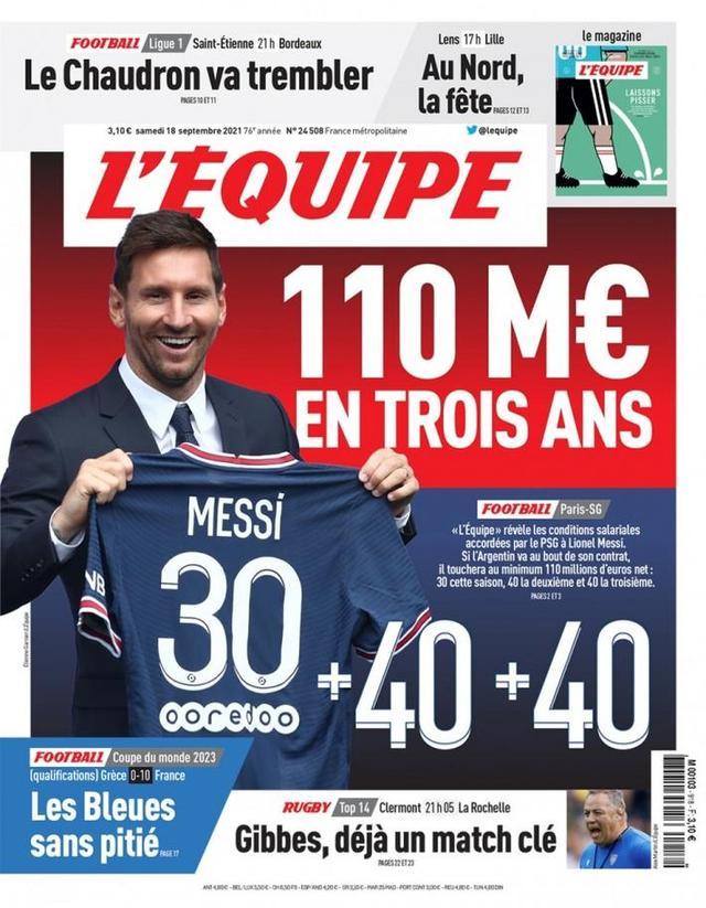 JRS直播网9月18日讯 今日,针对梅西的薪资,《队报》今日头版曝光了相关细节,报道称,梅西的3年薪水共计至少税后1.1亿欧。