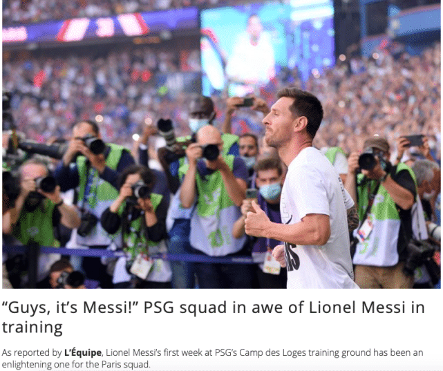 JRS直播网讯 北京时间8月19日,来自法国权威媒体《队报》的消息,尽管还没有为大巴黎完成正式比赛首秀,但阿根廷巨星梅西早已经在训练上用表现征服了所有队友。目前,梅西只在巴黎训练营与队友进行了1周的合练(梅西是在8月12日开始跟队训练),但全队上下不论年纪大小,都已经被梅西在训练场上展现的状态感到惊艳,并且被梅西的能力所彻底征服。