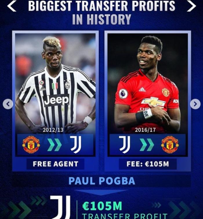 第三的是博格巴,12-13赛季,尤文免签博格巴,随后16年夏天,尤文以1.05亿欧元的价格把他卖回了曼联,尤文因此收获了1.05亿欧元的收益,马洛塔此前还一直标榜这是自己最成功的交易。而第四的是登贝莱,16年夏天,多特花费了3500万欧元签下登贝莱,第二年夏天,他们就以1.35亿欧元的价格把他卖给了巴萨,而多特因此获利1亿欧元。
