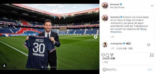 JRS直播网讯 北京时间昨天,梅西在出席了巴黎的新闻发布会后,更新了自己加盟巴黎圣日耳曼的Instagram动态,目前这条这条动态的点赞数已经突破了2000万。