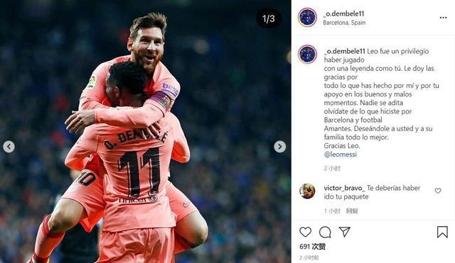 JRS直播网讯 北京时间8月7日,巴萨球员奥斯曼-登贝莱在个人社交媒体上告别巴萨传奇球员梅西。