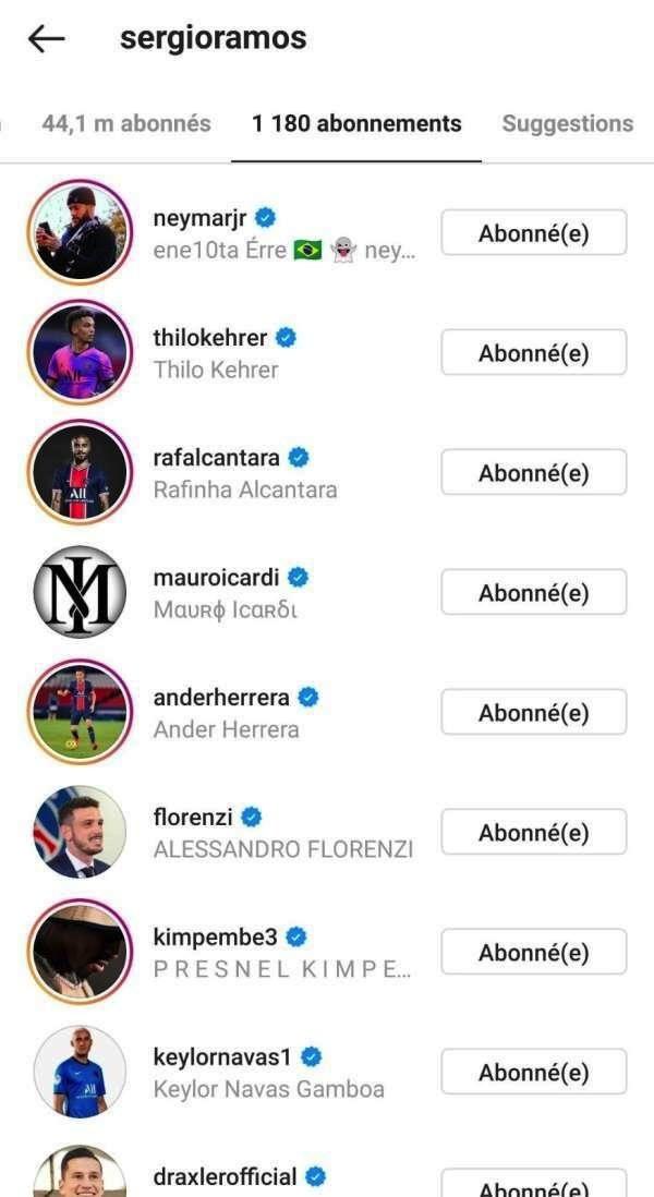 不过此前,拉莫斯的一个举动似乎暗示他已经决定离开皇马加盟大巴黎了。他在社交网络上突然一次性批量的关注了多名巴黎球员,其中包括内马尔,拉菲尼亚,埃雷拉,伊卡尔迪,弗洛伦齐,金彭贝等人。如此反常的举动,确实让人浮想联翩。