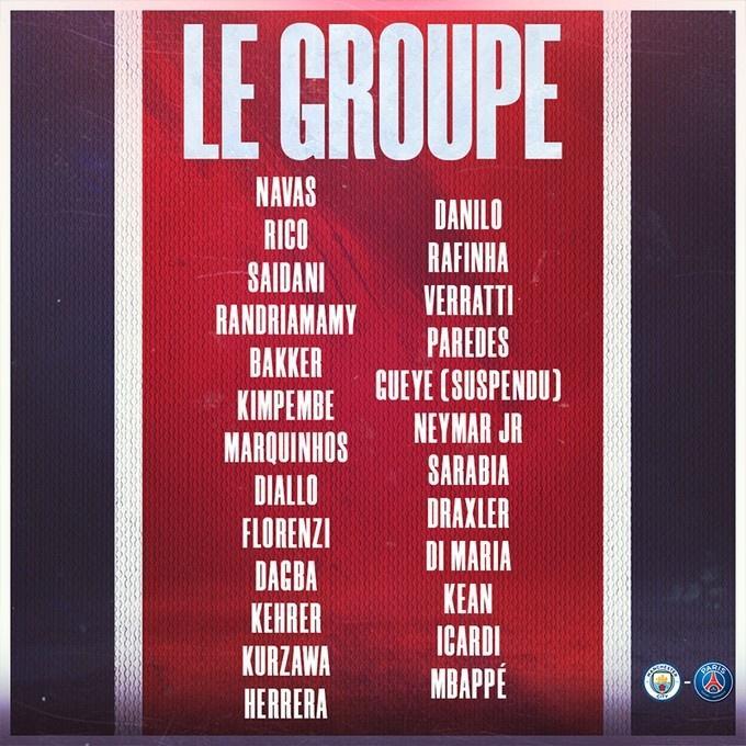 JRS直播网讯北京时间5月3日,巴黎官方公布欧冠半决赛次回合战曼城大名单,姆巴佩、内马尔领衔。