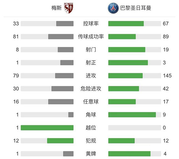 第47分钟,梅斯扳平比分,桑通斯后点头球冲顶破门,梅斯1-1巴黎。