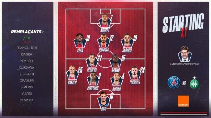 JRS直播网讯04月18日星期日19:00,法甲第33轮巴黎圣日耳曼主场迎战圣埃蒂安,目前双方已经公布了本场比赛的首发阵容。