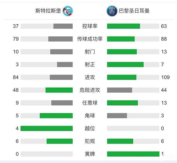 全场比赛结束,最终巴黎4-1战胜斯特拉斯堡。