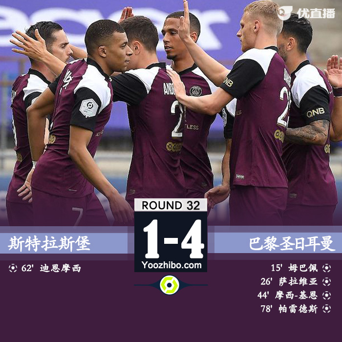 巴黎4-1斯特拉斯堡 姆巴佩、帕雷德斯分别传射建功