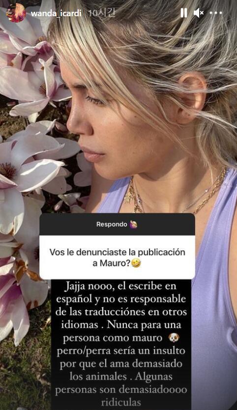 旺达说:“伊卡尔迪用西班牙语发布的这条动态,他不负责翻译。没有人像毛罗这样热爱小动物,他没有想到过像是狗或母狗这样的词汇可以用来侮辱别人。有的人心太脏,太荒谬。”