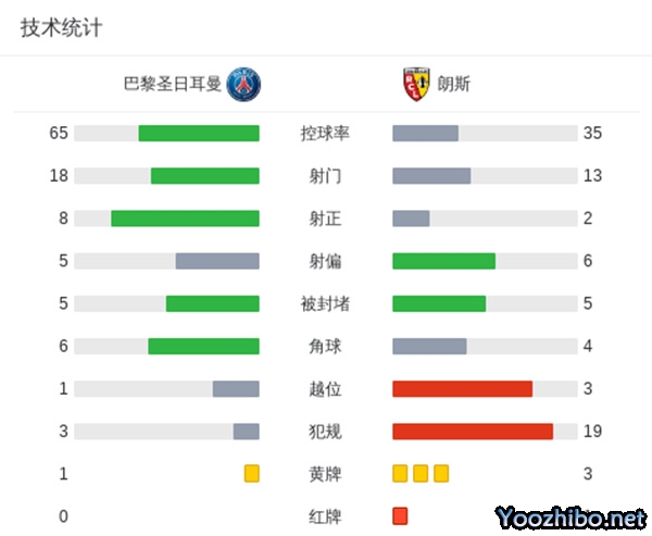 最终巴黎1-0击败朗斯,取得联赛三连胜,以6分优势领跑法甲。