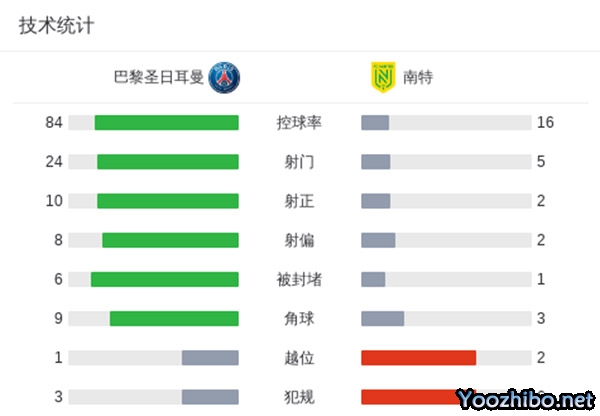 最终巴黎1-1战平南特,终结了联赛5连胜的势头,仍继续领跑法甲。