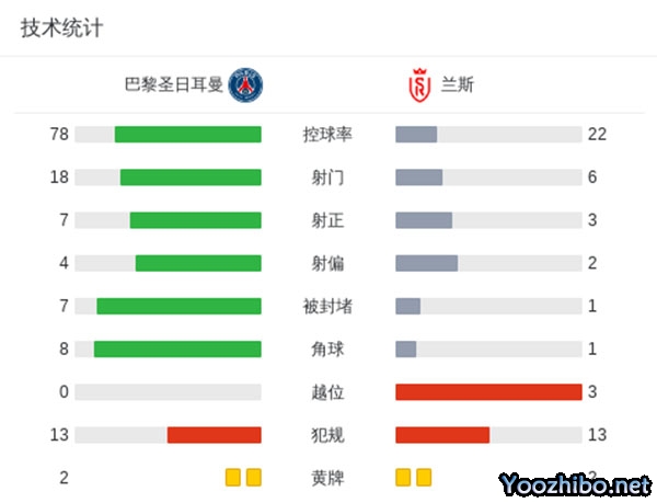 兰斯首发:94-迪乌夫、23-布达、6-阿坦加纳、21-吉普雷、18-阿奇莫、15-穆涅西、30-帕特里克、7-伊东纯也、10-图玛、17-中村敬斗、22-奥马尔