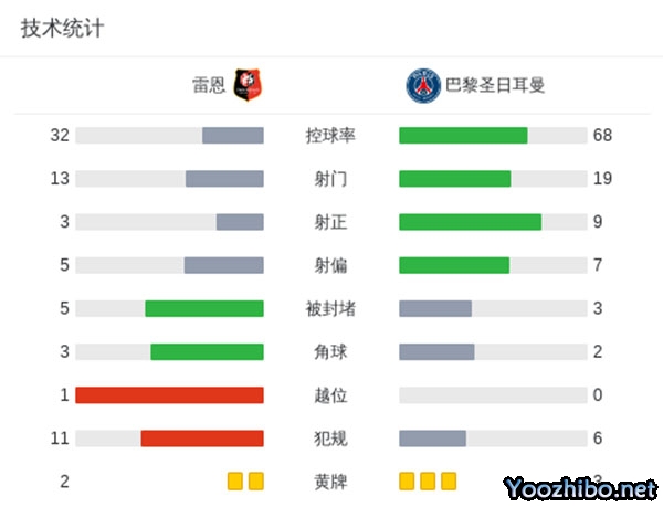 最终,巴黎4-1大胜雷恩,先赛16分领跑积分榜!