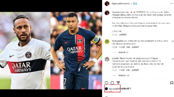 这位网友转发了《队报》的文章,文章主要内容为:去年夏天,姆巴佩向巴黎圣日耳曼明确表示,他和内马尔在同一阵容中没有更多的空间。巧合的是,就在内马尔被宣布将加盟利雅得新月的当天,姆巴佩兴高采烈地回归了巴黎圣日耳曼的正常训练。