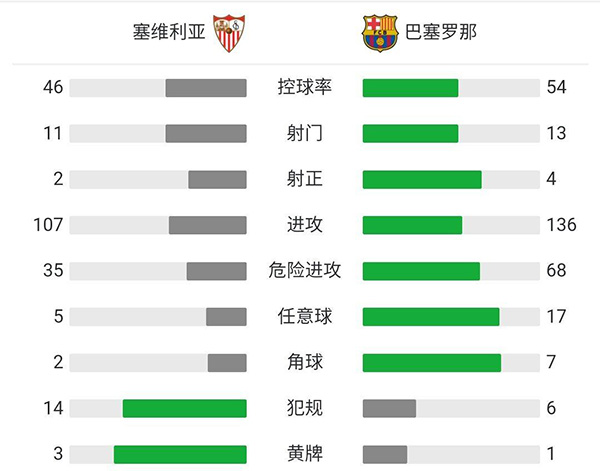 查看:塞维利亚vs巴塞罗那 全场录像技术统计: