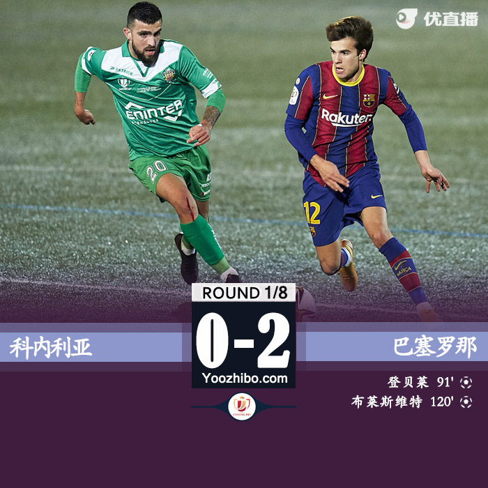 最终,巴萨客场通过加时2-0击败科内利亚,成功晋级国王杯16强。