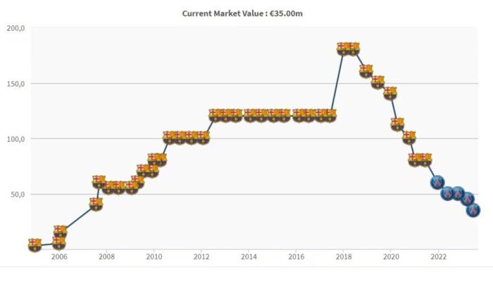 JRS直播网讯06月28日,德国《转会市场》更新了法甲球员的身价。而目前与巴黎圣日耳曼合同还没有到期的梅西,最新身价也随之揭晓。相比于3月27日的4500万欧元,梅西目前身价已经跌至3500万欧元。梅西的这一身价在法甲(合同6月30日到期)排名第11位,世界范围排名第170位,阿根廷球员中排名第8,在1987年出生的球员中排名第一。