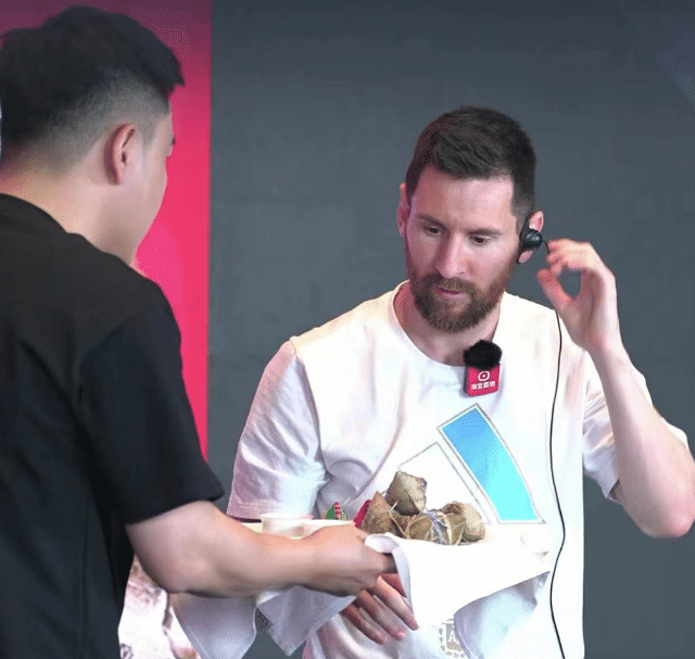 现场梅西被告知即将迎来中国一年一度的端午节,还挑选了一个粽子。梅西还在现场说中文:“端午安康”。