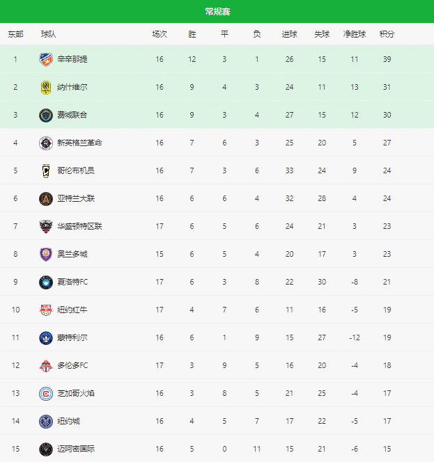 美国职业大联盟的赛制是一共29支球队,东部15支,西部14支,梅西加盟的迈阿密国际属于东部。常规赛结束之后,东西部排名前7的球队参加季后赛,一共是14支队伍可以获得季后赛门票。迈阿密国际目前的战绩是16战5胜11负,没有平局,积15分,排名东部倒数第一。