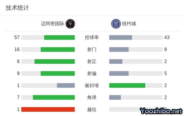 迈阿密国际1-1纽约城 苏牙破门+失单刀梅西缺阵