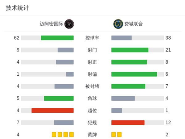 全场比赛结束,迈阿密国际3-1费城联合!