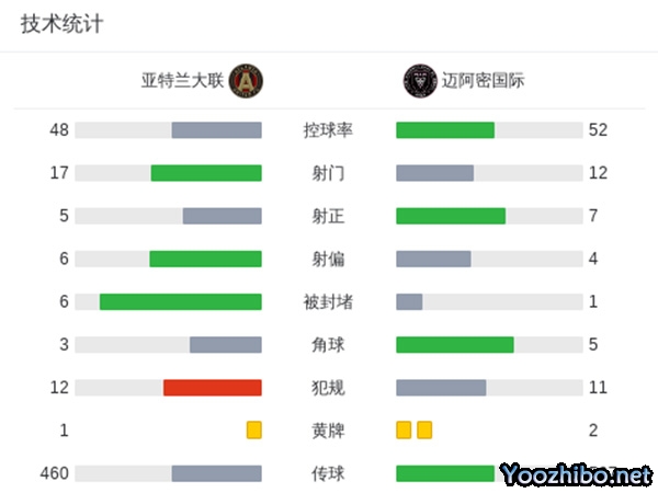 最终迈阿密国际2-2亚特兰大联仍领跑东区。