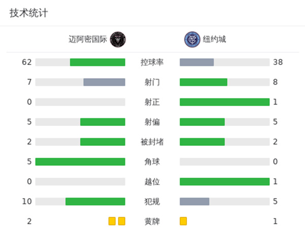 迈阿密1-1纽约城 梅西缺战迈阿密绝平&失绝杀&排东区倒三