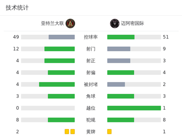 最终迈阿密国际客场2-5不敌亚特兰大联。