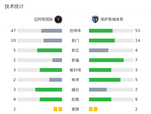 关键事件: 第8分钟,堪萨斯城先开记录!古铁雷斯中路远射卡伦德扑救脱手门前萨卢瓦补射破门,迈阿密国际0-1堪萨斯城。