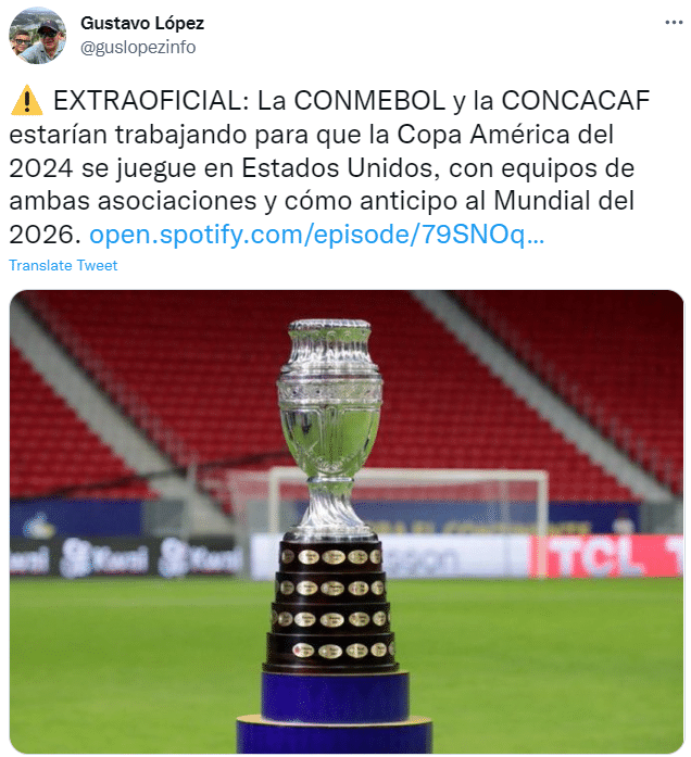 JRS直播网04月08日讯 据美国记者GustavoLopez报道,南美足联和中北美足联正在商讨由美国主办2024年的美洲杯。