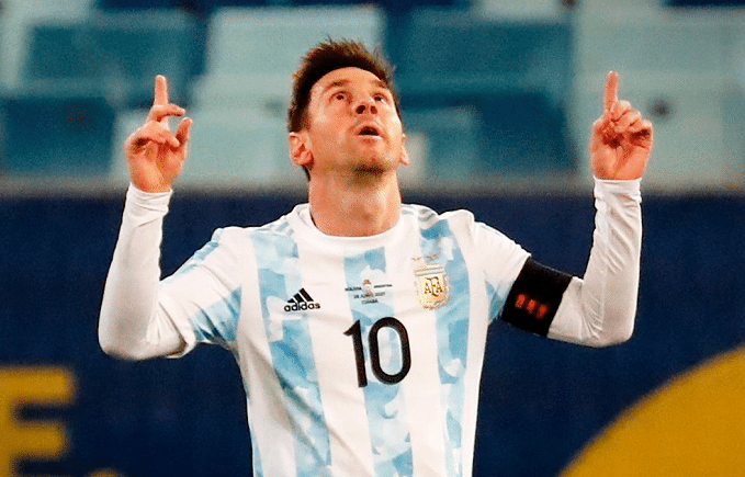 梅西目前为阿根廷打进76个球,距离贝利保持的南美洲国家队进球纪录只有1个球的差距,所以梅西能否在决赛追平甚至是反超贝利的纪录,值得期待。冥冥中自有定数,梅西决赛的对手是巴西队,而纪录保持者就是巴西传奇贝利。