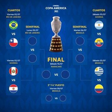 JRS直播网讯 在1/4决赛中,下半区阿根廷将遭遇厄瓜多尔,乌拉圭迎战哥伦比亚。上半区巴西遭遇智利,秘鲁则将迎来巴拉圭。