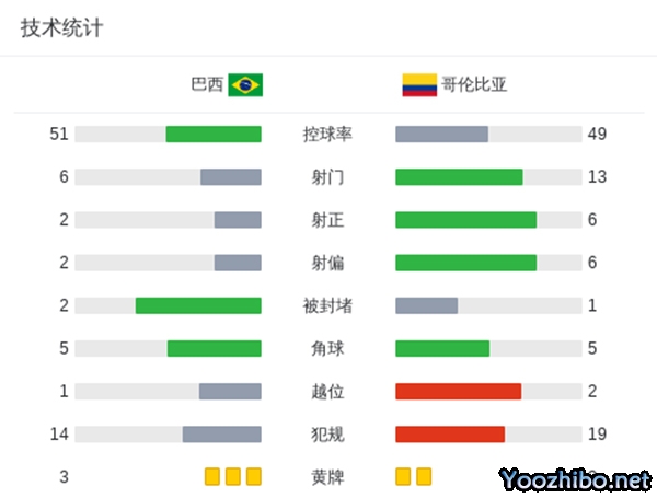 巴西1-1哥伦比亚小组第二出线 1/4决赛将战乌拉圭
