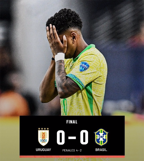 JRS直播网讯 在北京时间7月7日结束的美洲杯最后1场1/4决赛中,“五星”巴西在常规时间90分钟多打1人情况下,0-0被乌拉圭逼平,点球大战中,巴西2-4不敌乌拉圭,遗憾无缘4强。这也是近3届巴西美洲杯的最差战绩,上2届球队分别是冠军和亚军。