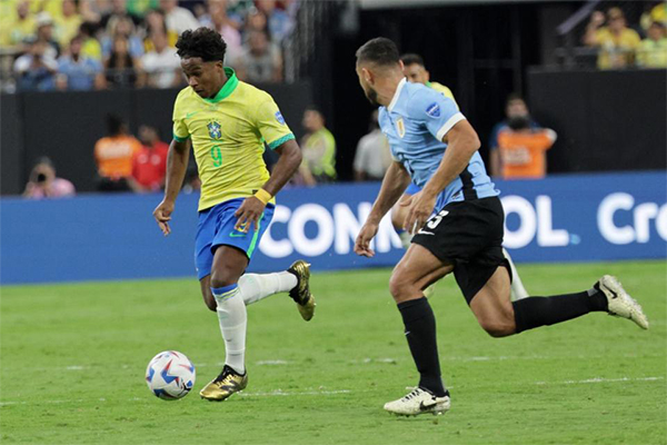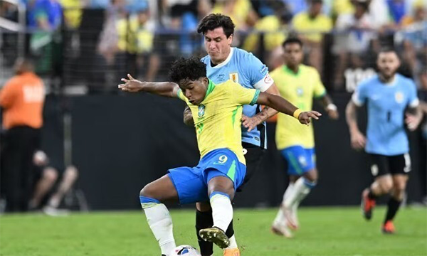 JRS直播网讯 在北京时间7月7日结束的美洲杯最后1场1/4决赛中,“五星”巴西在常规时间多打1人情况下,0-0被乌拉圭逼平,点球大战中,巴西2-4不敌乌拉圭,遗憾无缘4强,创下近3届美洲杯最差战绩。而本场比赛,被寄予厚望的17岁“新大罗”恩德里克的表现令人相当失望。