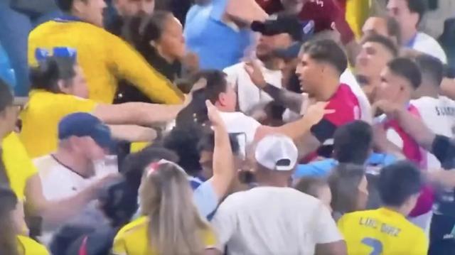 JRS直播网讯 美洲杯半决赛,乌拉圭0比1哥伦比亚,哥伦比亚晋级美洲杯决赛!赛后,乌拉圭球员与哥伦比亚球迷爆发大规模冲突(据称是有哥伦比亚球迷嘲讽和攻击乌拉圭球员家人),努涅斯一马当先冲上看台与哥伦比亚球迷互殴!随后南美足联官方发文,强烈谴责任何足球场内外暴力行为
